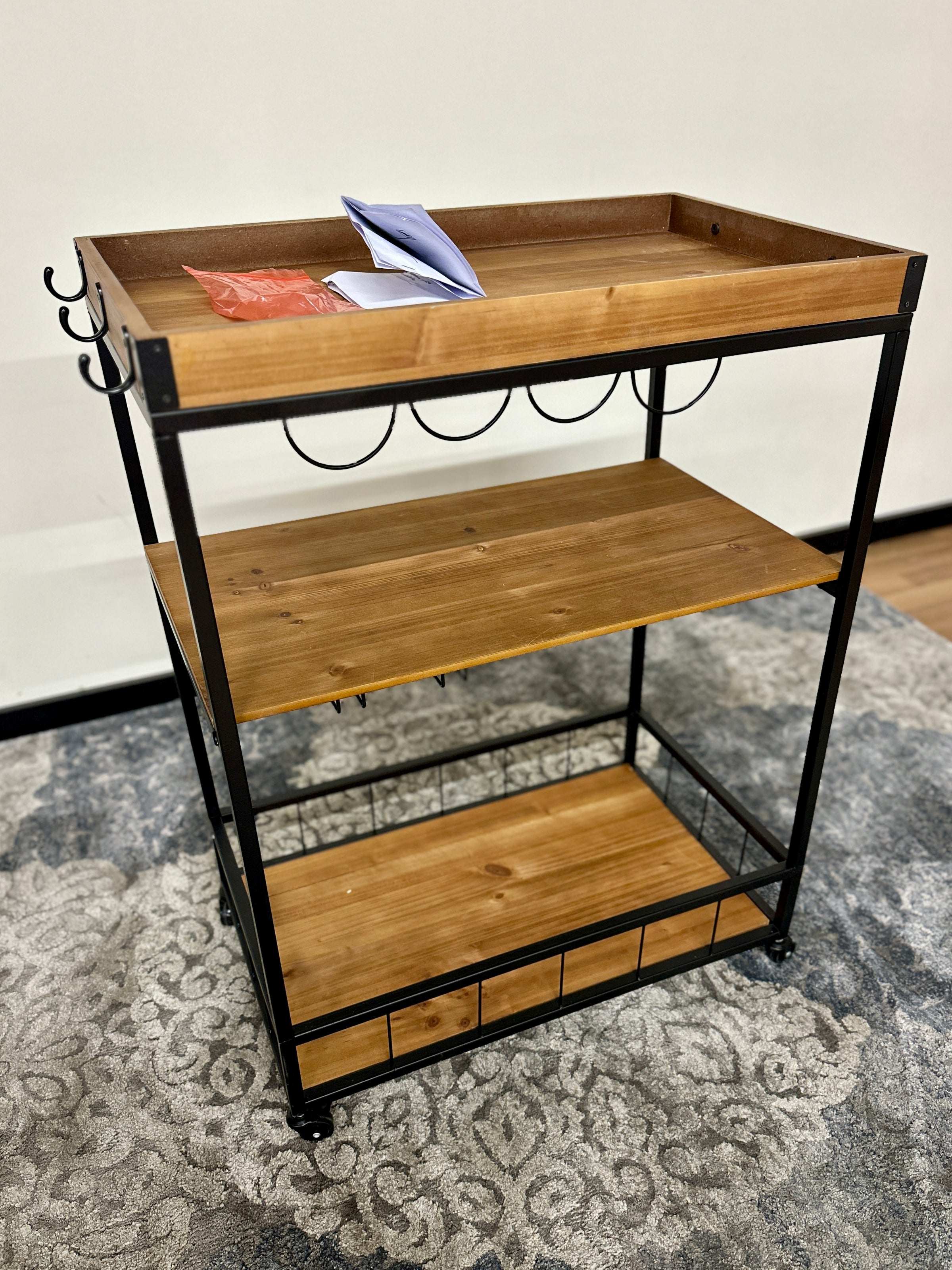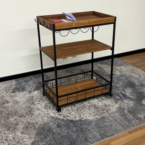 Stylish oak-finish bar cart with a modern design