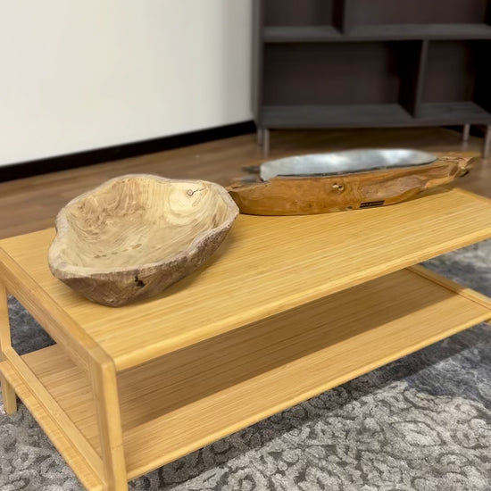 Hand-carved root bowl and tray set for a rustic, natural look