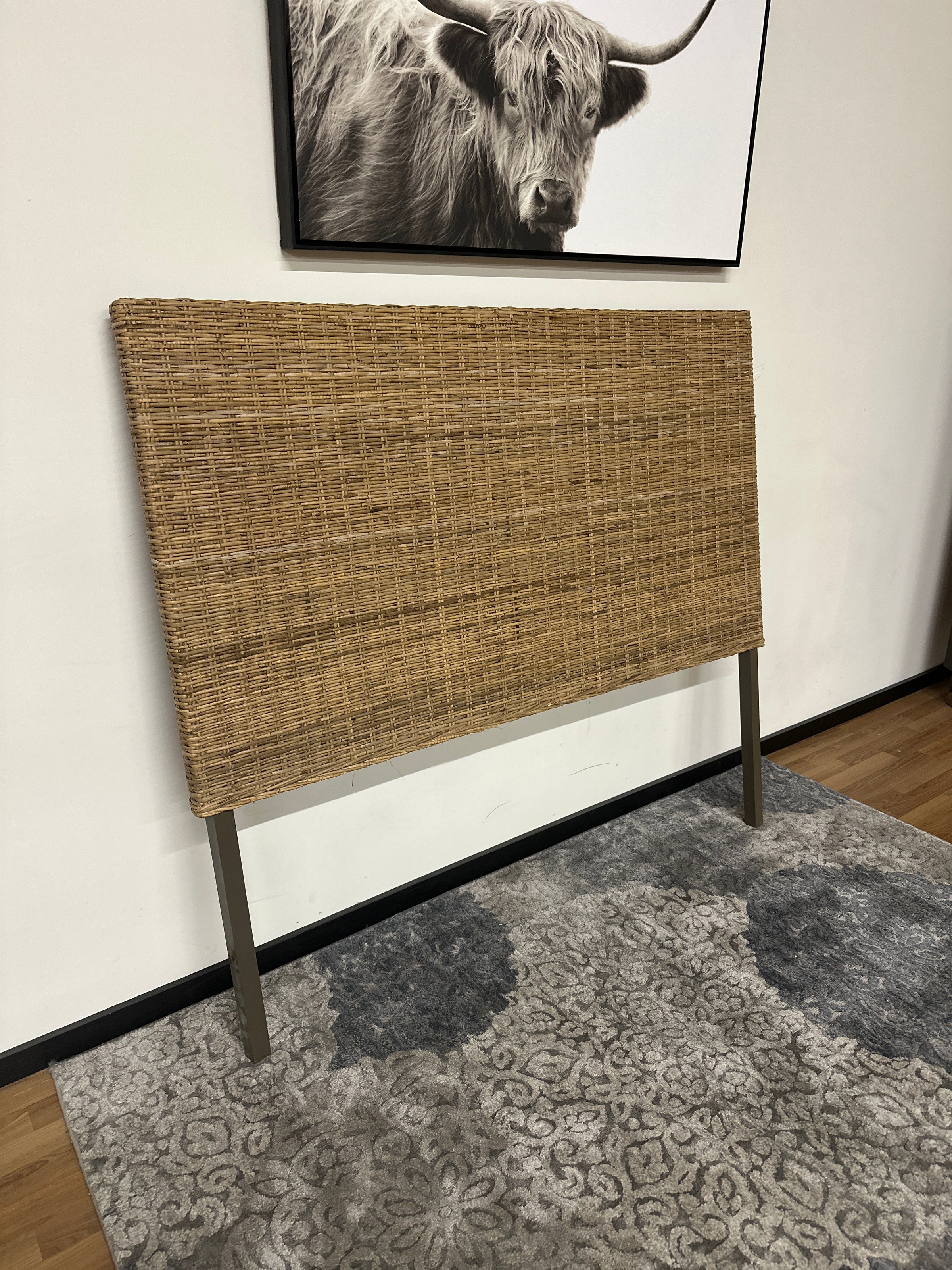 Beautiful queen‑size headboard with natural rattan detailing